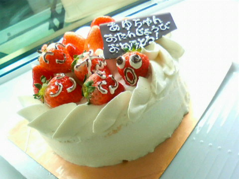 いちごに顔をつけてケーキにアレンジすると、キャラクターケーキより何倍も得した感じしませんか?(こじつけ!?)